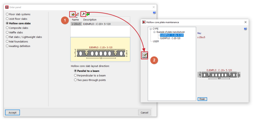 Esta opción estará disponible cuando se haya definido al menos un paño de placas aligeradas en la planta.