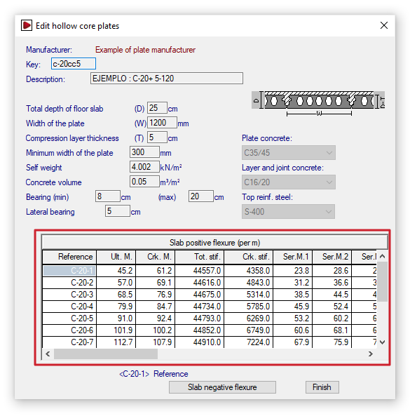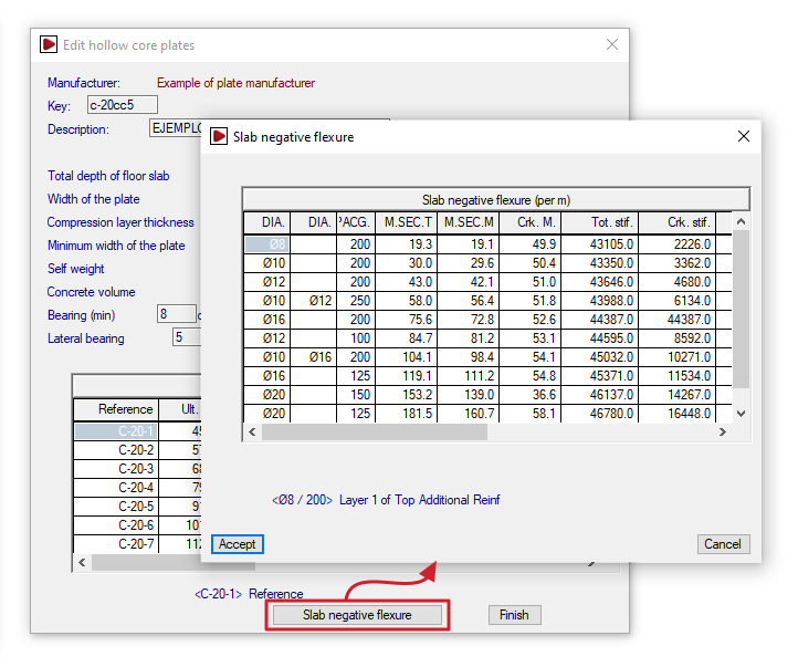 Con esta opción es posible modificar y asignar de los momentos mínimos positivos y/o negativos a resistir por los forjados de viguetas, placas aligeradas y losas mixtas y aparecerá disponible si hay al menos un paño de estos tipos en la planta.