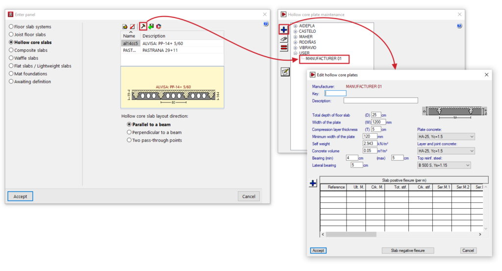 A continuación se describen las opciones para introducir losas macizas, losas apoyadas en el terreno y paños pendientes de definir.