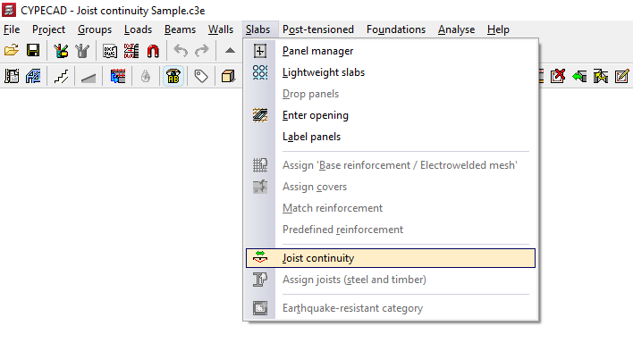 Tras seleccionar una de estas dos opciones, se deben marcar con el botón izquierdo dos paños de forjado de viguetas metálicas o de madera para establecer la continuidad entre ellas.