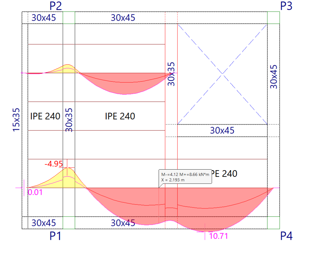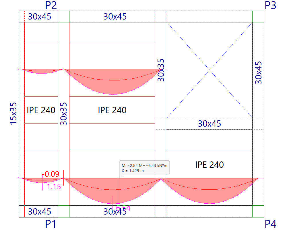 | Por defecto, el programa asigna momentos mínimos positivos de p*L²/16 en vanos aislados e intermedios y de p*L²/12 en vanos extremos. |