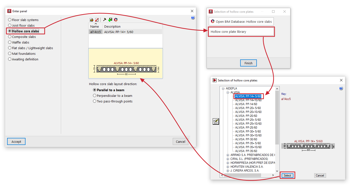 Esta opción estará disponible cuando se haya definido al menos un paño de placas aligeradas en la planta y permite asignarles el "Tipo de proceso constructivo" a efectos de su cálculo. Este puede ser: