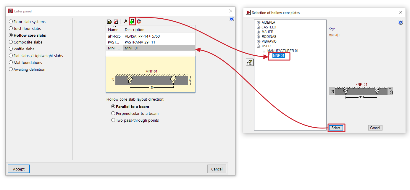 Tras seleccionar una de estas dos opciones, se deben marcar con el botón izquierdo dos paños de forjado de viguetas metálicas o de madera para establecer la continuidad entre ellas.