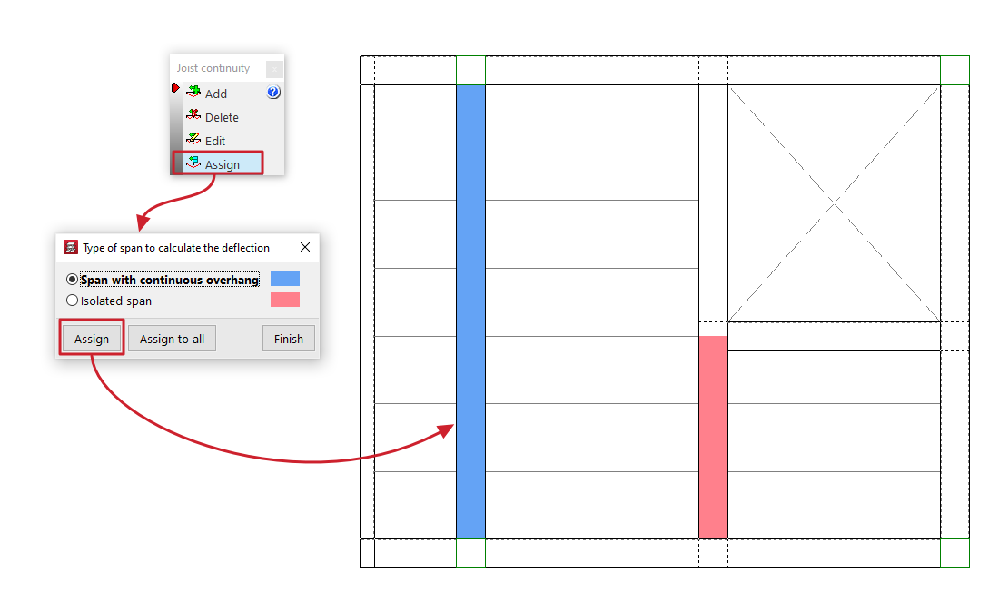 Permite seleccionar dos vanos interiores para que se considere la continuidad de las viguetas en ellos como si se tratara de un único vano aislado.