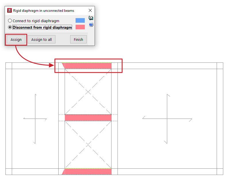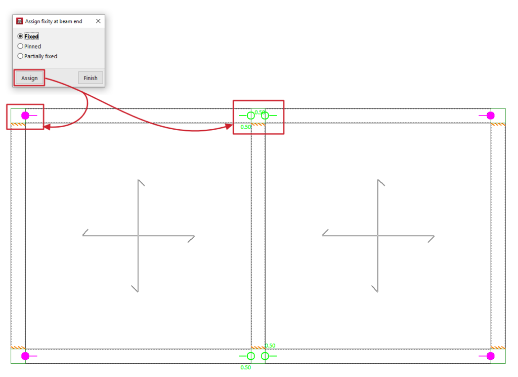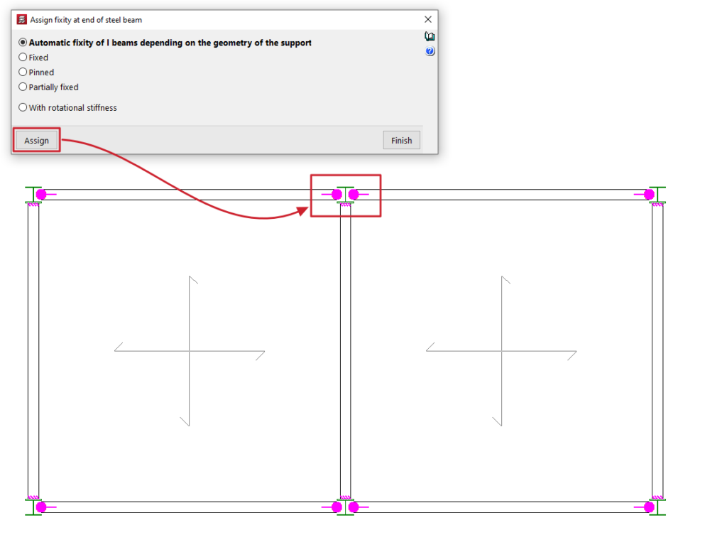 Tras elegir uno de los anteriores, se pulsa en "Asignar" y se selecciona el extremo o los extremos de una o varias vigas marcándolos uno a uno o utilizando un área de captura.
