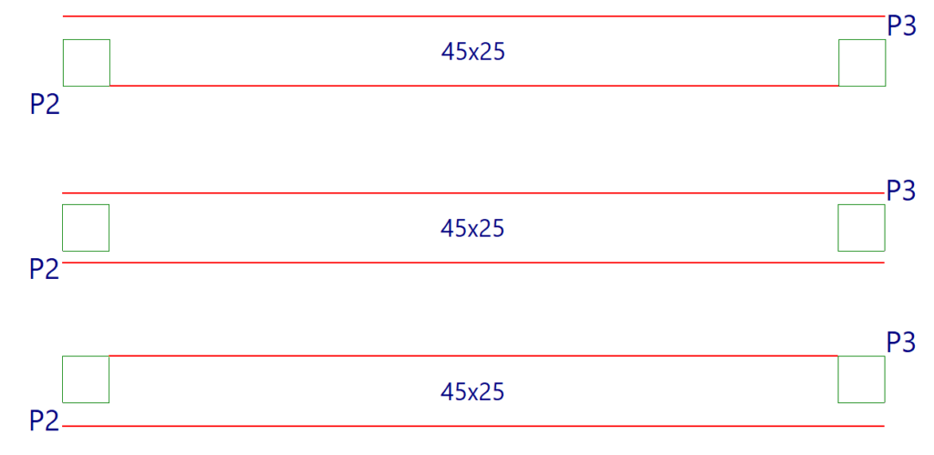 Esta opción permite mantener el ajuste original definido en la viga al asignarle las nuevas dimensiones, independientemente de la posición del puntero al seleccionar la viga. Esta opción se puede utilizar tanto en la asignación individual a una viga como en una asignación múltiple a varias vigas.