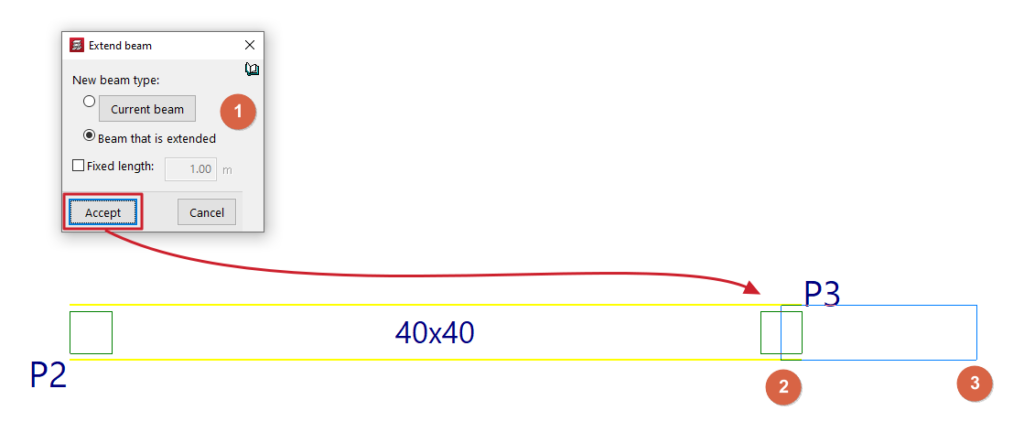 Con la opción "Prolongar viga" se puede desplazar el extremo de una viga en la dirección de su eje.
