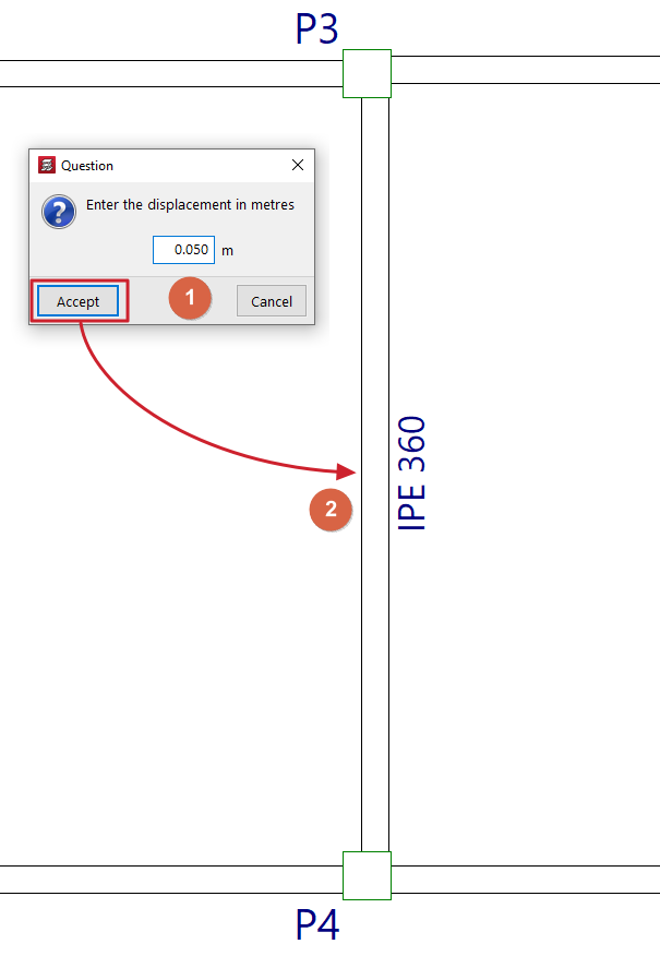 Con la opción "Desplazar" se puede mover el extremo de una viga (manteniendo fijo el otro extremo) o mover toda la viga en paralelo, a partir de un valor de desplazamiento definido.