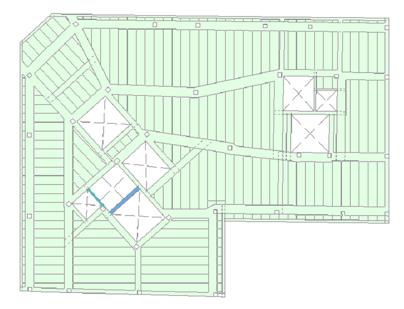 Al borrar una viga que divide dos paños se debe seleccionar con el botón izquierdo el paño que se desea conservar. Tras la eliminación de la viga, este paño cubrirá la superficie de los dos paños previamente existentes.
