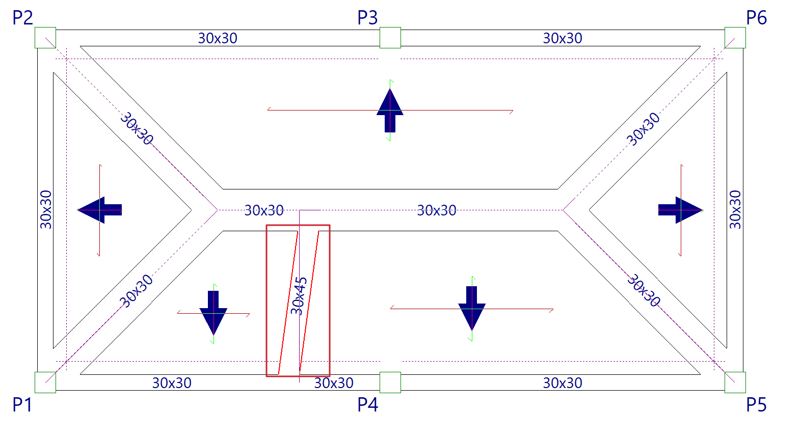 | Esta desconexión de este tipo de vigas con los pilares sólo es efectiva en forjados unidireccionales, ya que las losas y los forjados reticulares también están conectados directamente a los pilares, no sólo a través de las vigas laterales. Si se encuentra este problema, conviene utilizar otro tipo de diseños, por ejemplo, eliminando la viga con vinculación exterior y definiendo el elemento de tipo muro de forma completa desde "Muros > Entrar muro". |