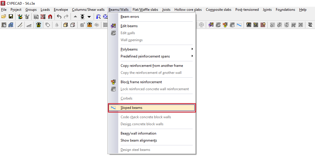 Esta opción es equivalente a la disponible en el menú del mismo nombre de la pestaña "Entrada de vigas".