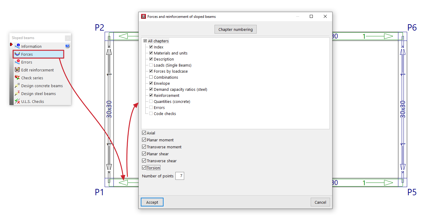 Estos esfuerzos pueden obtenerse para el "Número de puntos" de la viga que se escriba en el campo correspondiente.