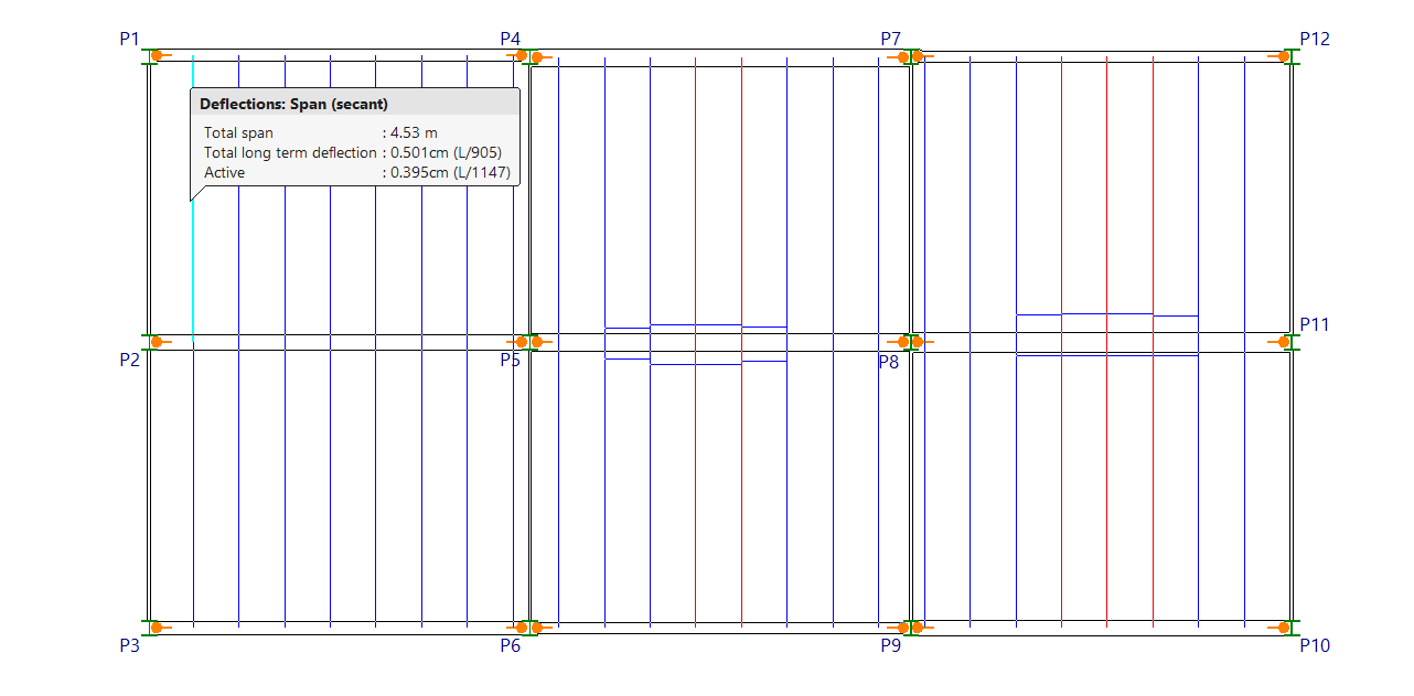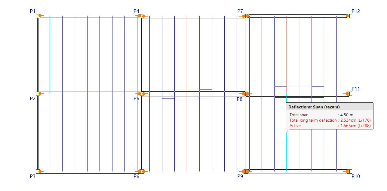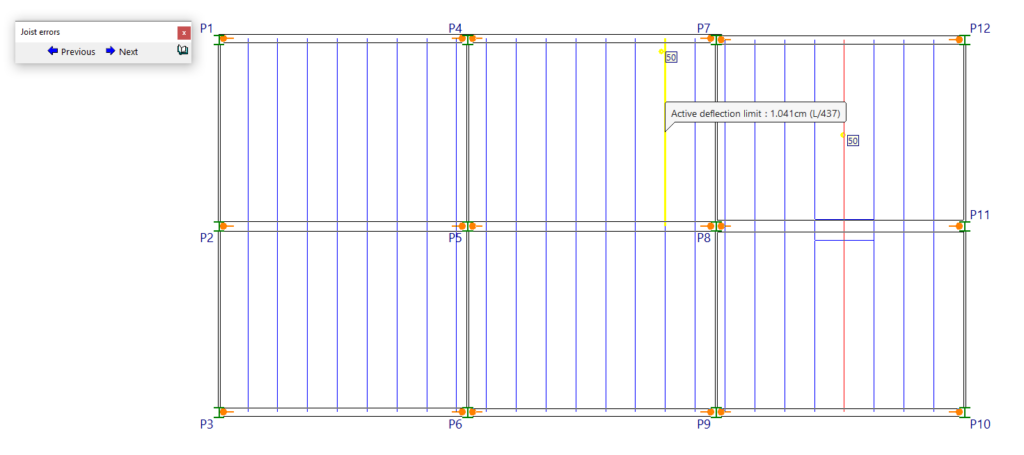 Además, las viguetas que tengan errores de flecha, o problemas de algún tipo, se destacarán en color rojo en planta.