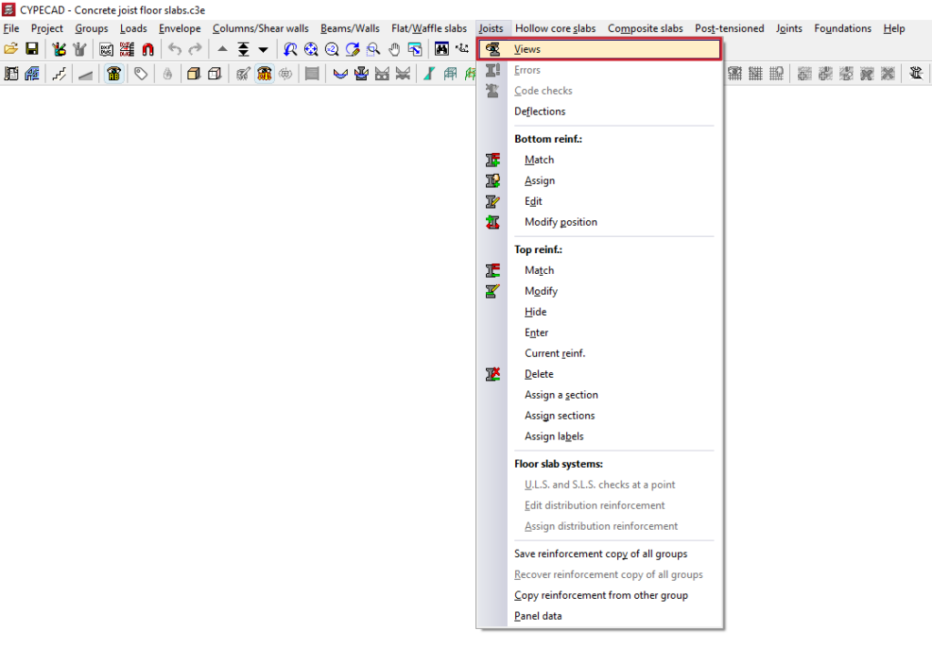 La opción "Vistas", dentro del menú "Viguetas" de la pestaña "Resultados" permite configurar el modo de visualización de los datos obtenidos tras el cálculo en los forjados de viguetas.