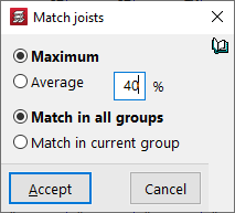 Las viguetas se agrupan de manera que todas las que formen parte de un grupo cumplan la siguiente expresión: (Momento máximo del grupo - Momento mínimo del grupo) < (%) * Momento máximo del grupo, siendo % el "Porcentaje de igualación" indicado por el usuario en la ventana emergente "Igualar viguetas" que aparece al pulsar sobre esta opción.