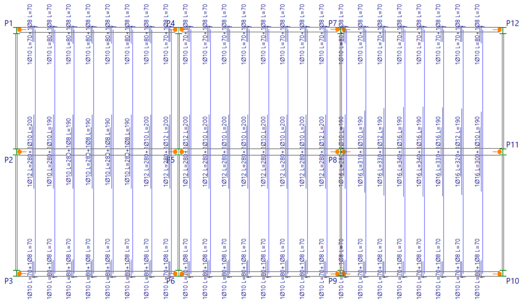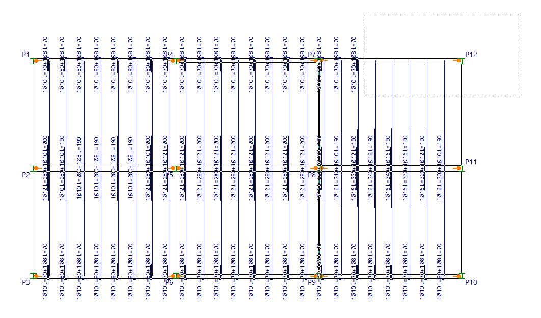 Al activar esta opción se muestra un detalle en el paño con la armadura de reparto bidireccional a disponer en los sistemas de forjados mencionados, con su diámetro y separación.