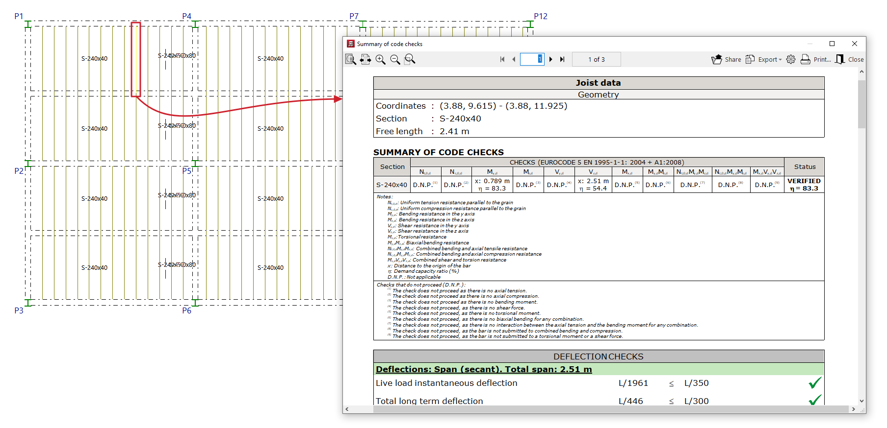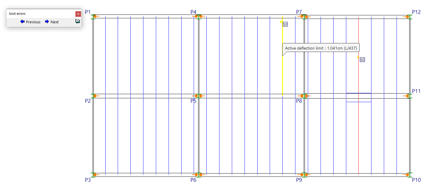 Además, las viguetas que tengan errores de flecha, o problemas de algún tipo, se destacarán en color rojo en planta.