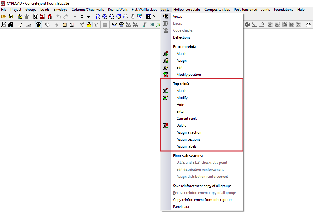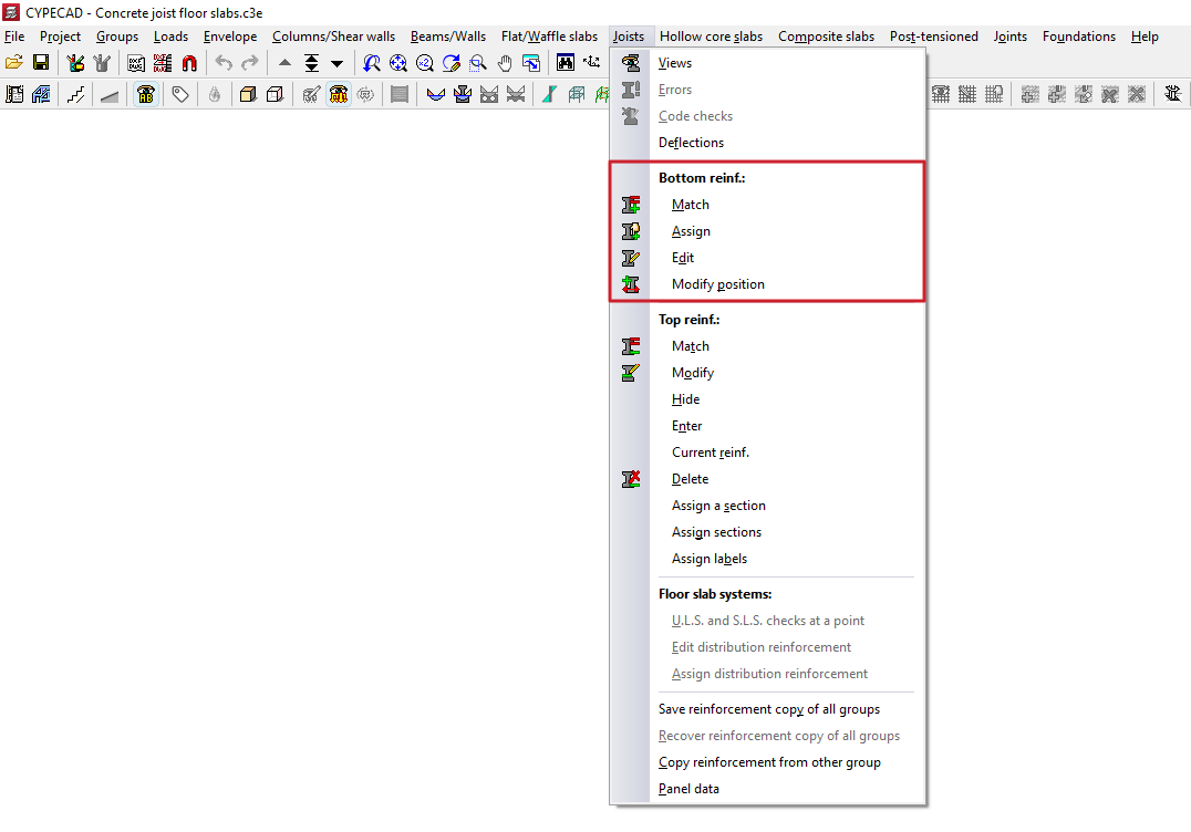 Igualación, edición y asignación de armaduras de negativos en forjados de viguetas