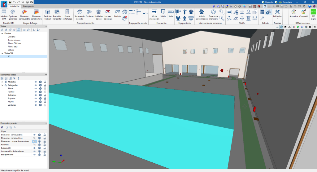 CYPEFIRE allows fire compartmentation to be carried out as a means of passive protection. These spaces will be separated from the rest of the compartments by fire-resistant construction elements for a certain amount of time. The aim of the compartmentation is to prevent the spread of fire from one compartment to the remaining compartments.