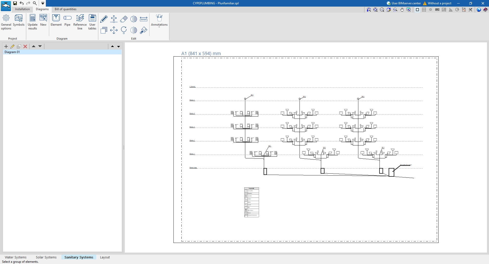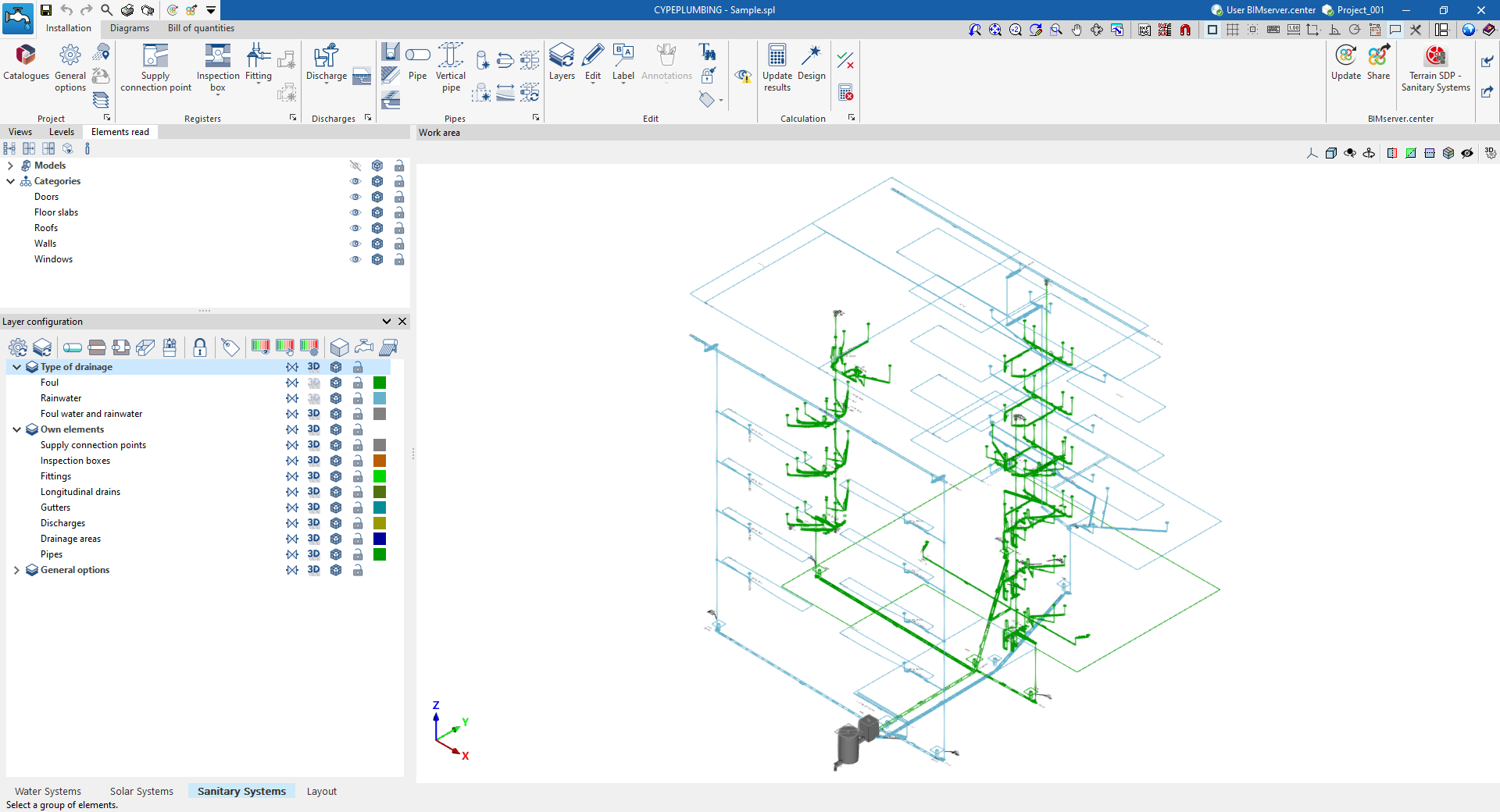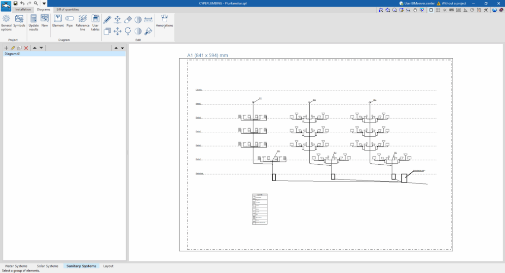 Entorno de trabajo de la solapa "Sanitary Systems"