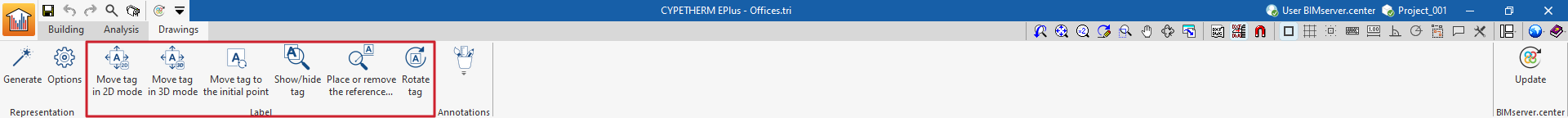 | Mover etiqueta en modo 2D | Mueve la etiqueta seleccionada en el plano en planta del elemento. | |