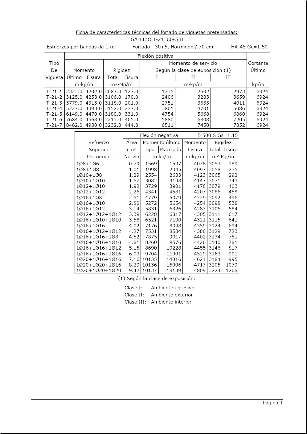 En los forjados unidireccionales de viguetas in situ el programa muestra en planos y en pantalla los siguientes resultados: