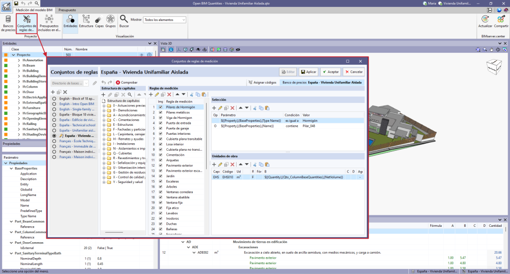 Medición de modelos BIM a través de reglas de medición previamente definidas