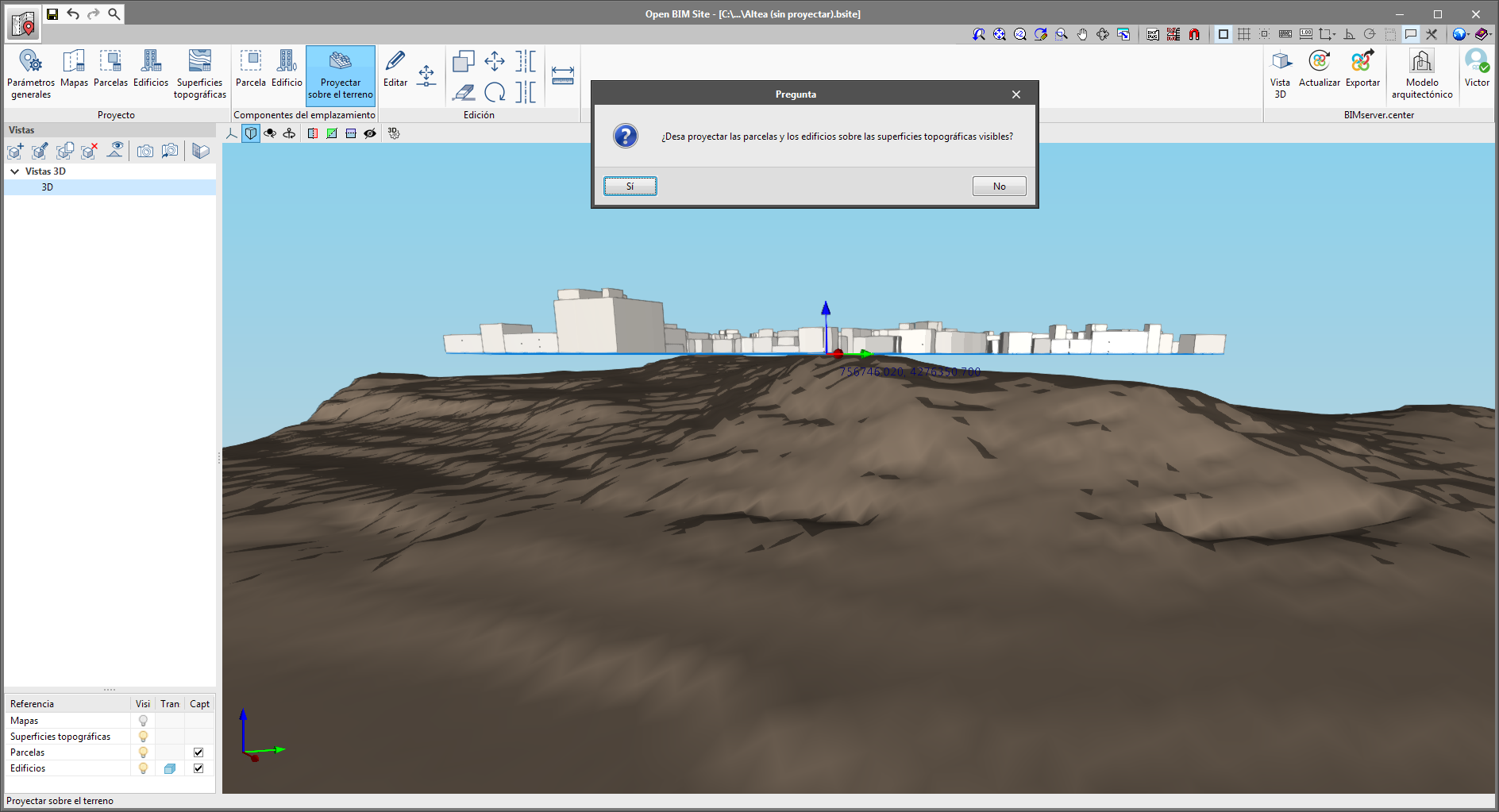 La visibilidad de los distintos elementos necesarios para el emplazamiento del proyecto se puede gestionar a través de tres secciones situadas en la parte izquierda de la interfaz principal del programa: