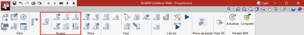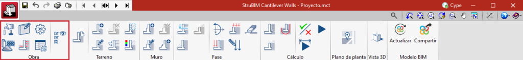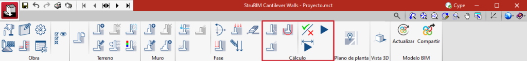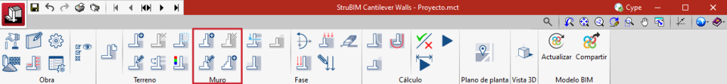 El entorno de trabajo de StruBIM Cantilever Walls es similar al de otros programas de CYPE.