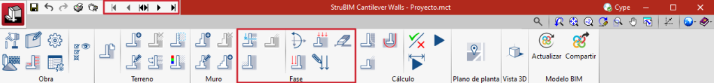 El menú para definir o cambiar entre diferentes fases constructivas se encuentra en la parte izquierda de la barra de título.