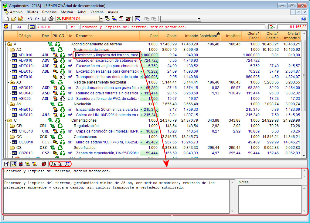 La versión 2012.m de Arquímedes permite ajustar el coste de un presupuesto (indicando el valor del presupuesto de ejecución material, el valor del presupuesto de ejecución por contrata o indicando un coeficiente de ajuste) aunque no se hayan introducido unidades de obra y sólo exista una estructura de capítulos donde el usuario ha incluido sus costes. En versiones anteriores era posible introducir directamente el coste de un capítulo de último nivel si éste no disponía de unidades de obra, pero el ajuste del presupuesto no actuaba sobre los costes de capítulos sin unidades de obra.