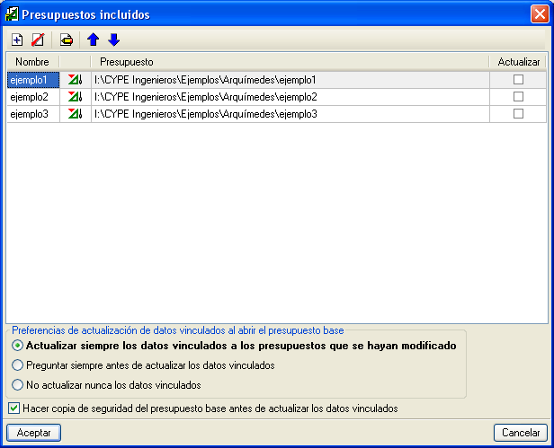 Con este módulo, Arquímedes permite incluir en un presupuesto base (vacío o no) varios presupuestos existentes y mantener la vinculación entre las unidades de obra incorporadas y sus presupuestos originales, de modo que el presupuesto base se pueda actualizar con los cambios que se realicen en los presupuestos originales.
