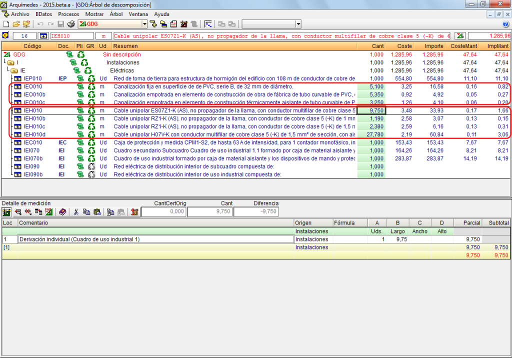 El programa mide y presupuesta los sistemas de distribución y todos los accesorios necesarios para la correcta instalación del sistema de techo radiante si dichos sistemas se han importado del Generador de precios.