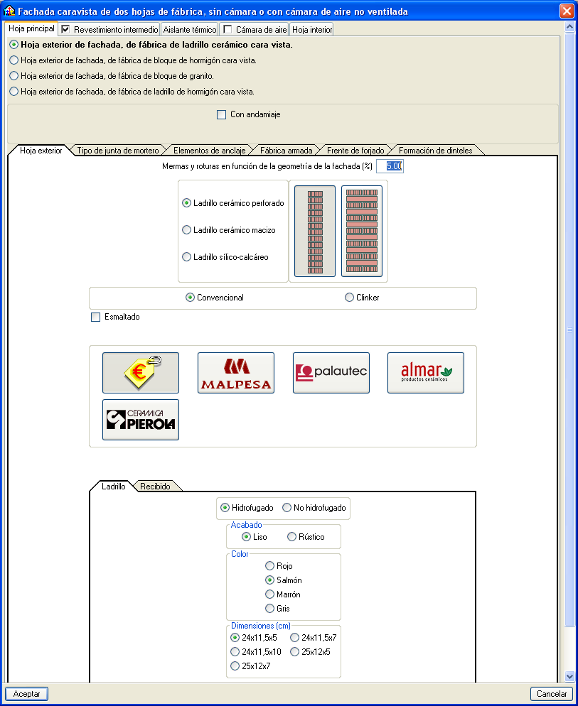 La conexión con el Generador de precios permite definir el elemento constructivo mediante una selección gráfica de sus características. Además, se importa junto con todos los parámetros necesarios para que el programa realice las comprobaciones necesarias, que de otro modo, el usuario debería definir manualmente. Dicha conexión también permite garantizar que la solución constructiva seleccionada exista en el mercado y que esté facilitada por el fabricante elegido.