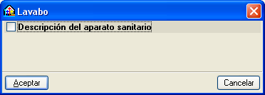 El usuario selecciona un aparato sanitario (lavabo, lavabo pequeño, ducha, bañera de 1,4 m o más, bañera de menos de 1,4...) y el programa introduce un consumo. No se representa el aparato en 2D ni en 3D y no se incluye en el presupuesto de la instalación.
