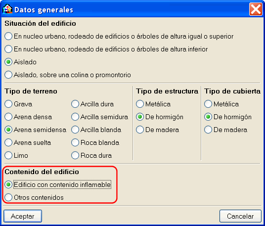 Este apartado aparece en el Proyecto generado por el programa si el usuario indica el punto de acceso a la cubierta desde el interior del edificio. El punto de acceso se sitúa en la cubierta seleccionando el botón
