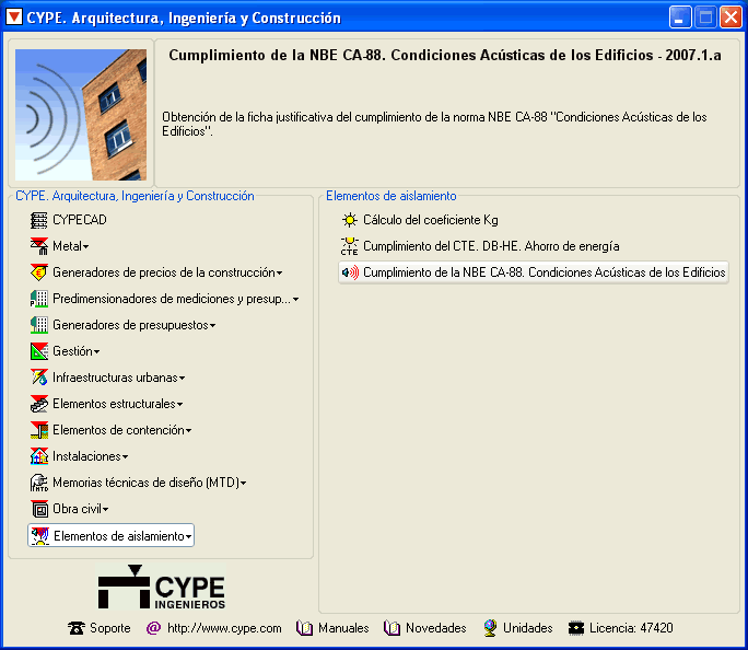 Para obtener la Ficha justificativa del cumplimiento de la NBE-CA-88, es necesario adquirir un nuevo permiso en su licencia de uso.