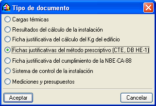 El módulo Climatización y aislamiento de Instalaciones de edificios permite ahora obtener la Ficha justificativa del método prescriptivo (CTE, DB HE 1) y la Ficha justificativa del cumplimiento de la NBE-CA-88.