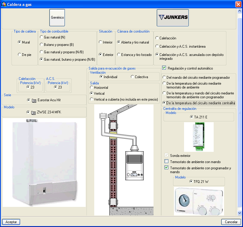 La versión 2007.1.a permite seleccionar calderas de gas para el cálculo y dimensionamiento de una instalación de calefacción de un edificio.