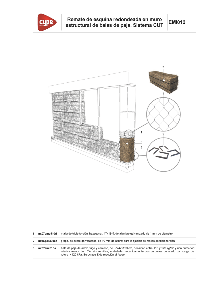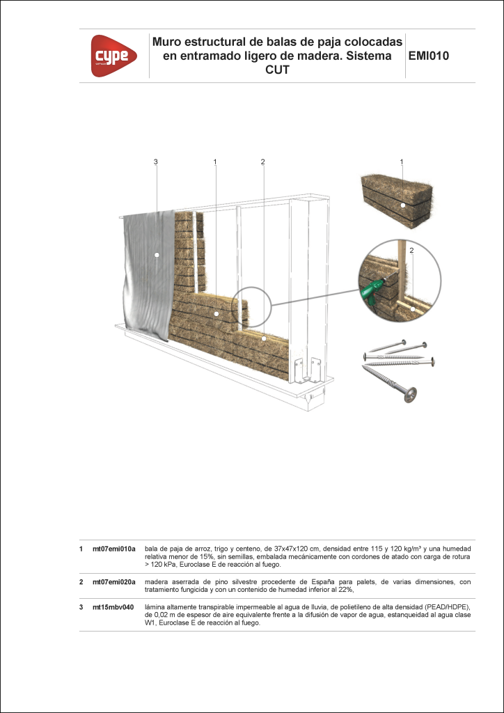 - EMI010. Muro estructural de balas de paja colocadas en entramado ligero de madera. Sistema CUT.