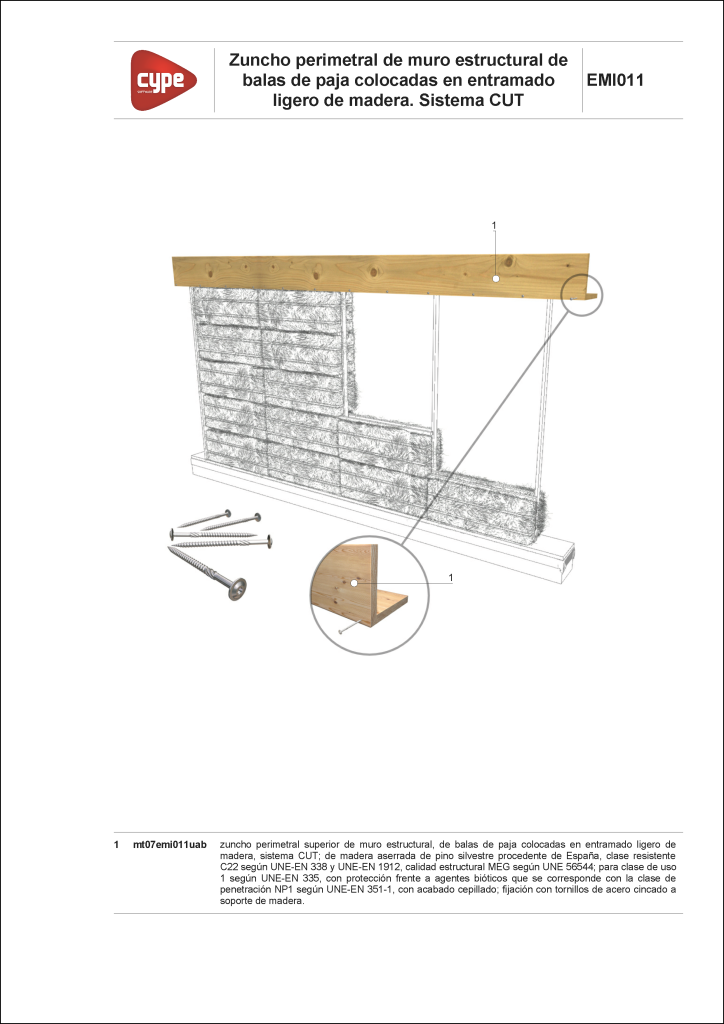 - EMI011. Zuncho perimetral de muro estructural de balas de paja colocadas en entramado ligero de madera. Sistema CUT.