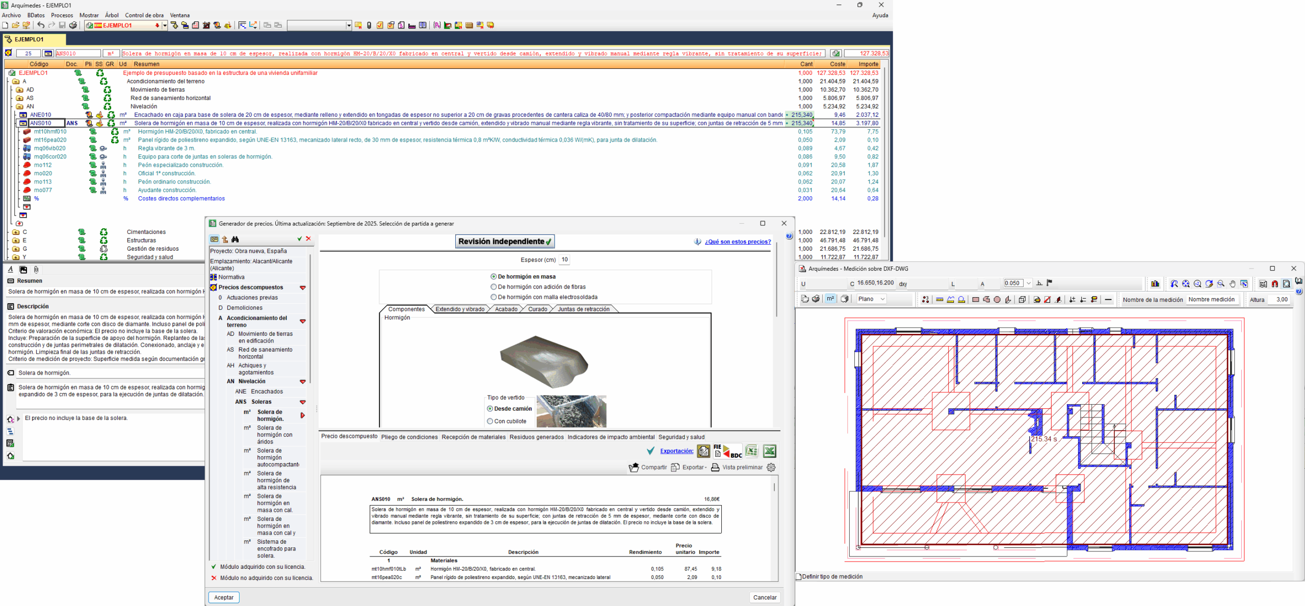 El programa ofrece un tratamiento pormenorizado de la estructura del presupuesto, con precios simples o descompuestos y con diferentes sistemas de medición: directa y detallada, sobre archivos CAD o digitalizados, o procedentes de programas BIM/CAD como Allplan®, Archicad® o Revit®.