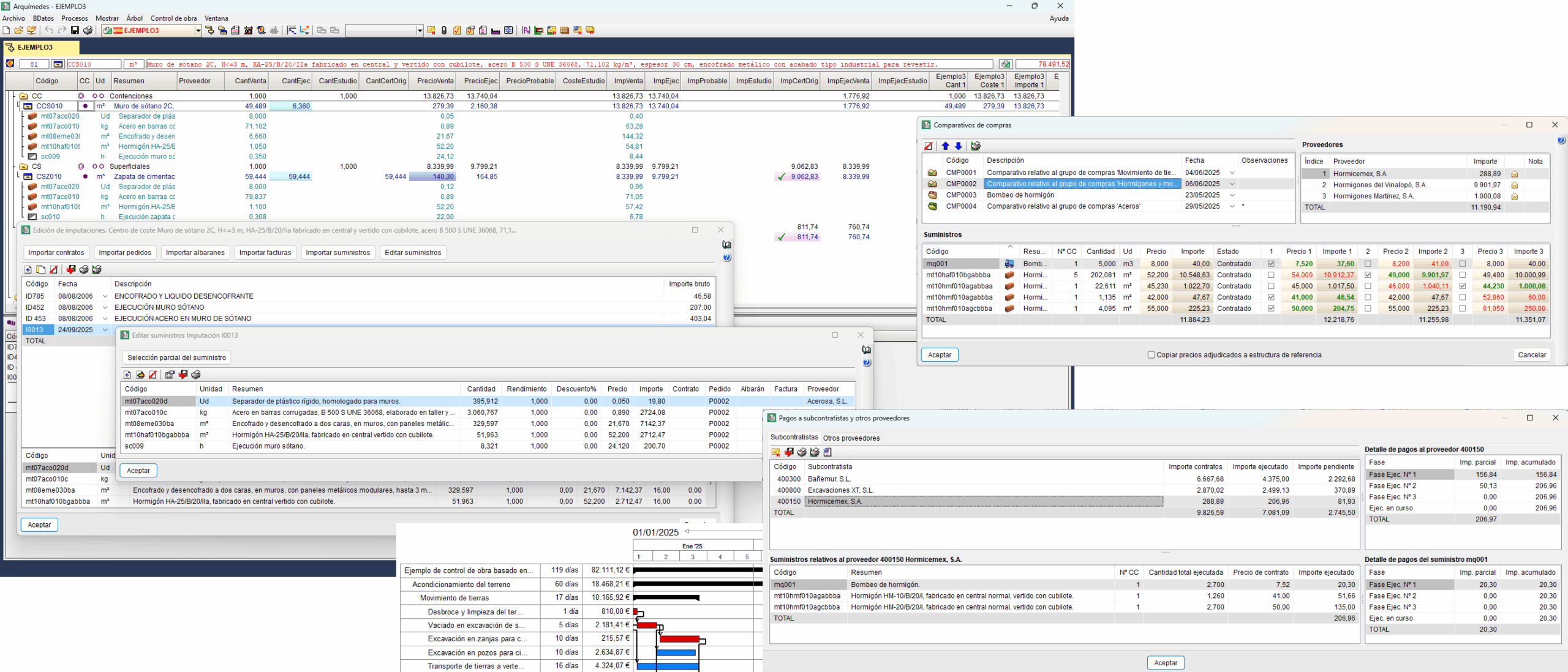 Se pueden registrar certificaciones, facturas de proveedores y clientes, analizar desviaciones de precio y cantidad respecto al presupuesto objetivo, y generar el flujo de caja con los vencimientos de cobros y pagos.