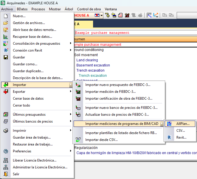 Importación de mediciones de Allplan a Arquímedes