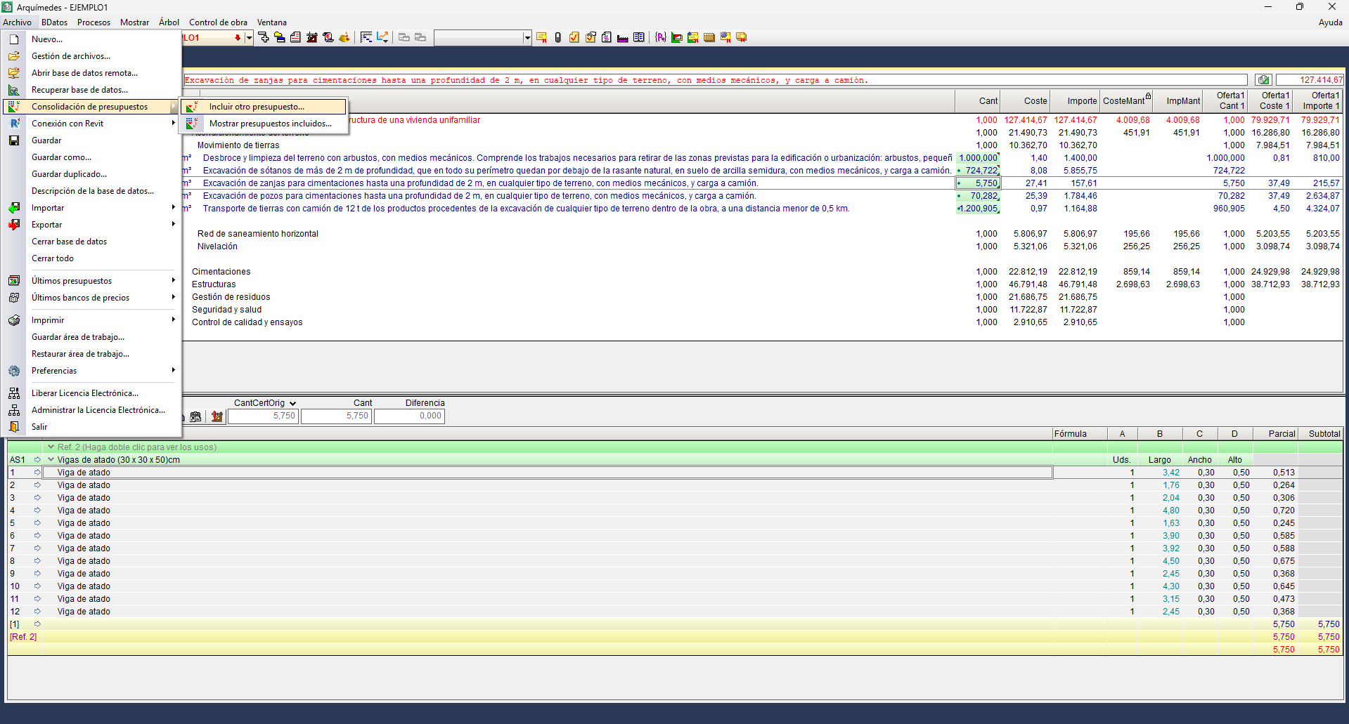El módulo de Arquímedes "Consolidación de presupuestos" permite incluir en un presupuesto base (vacío o no) varios presupuestos existentes y mantener la vinculación entre las unidades de obra incorporadas y sus presupuestos originales, de modo que el presupuesto base se pueda actualizar con los cambios que se realicen en los presupuestos originales.
