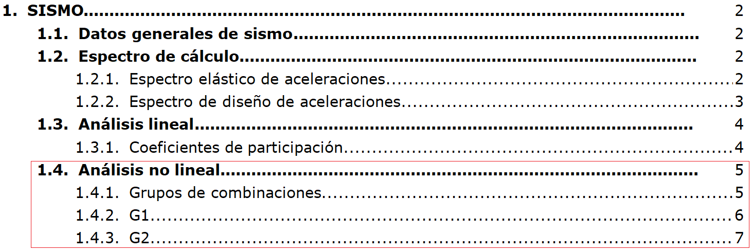 Una vez realizados los cálculos, es posible consultar el listado "Justificación de la acción sísmica" y ver los grupos de combinaciones generados y los resultados del análisis modal espectral para cada uno de ellos.