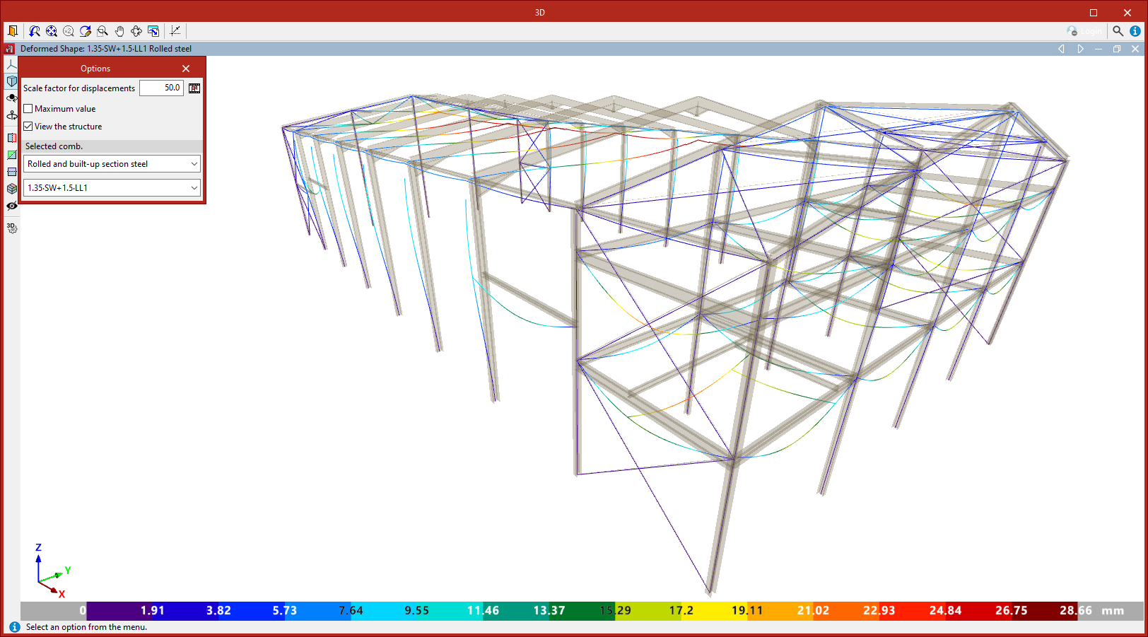 Si se selecciona "Deformada", se muestra la deformada de los elementos de la estructura para la combinación seleccionada.