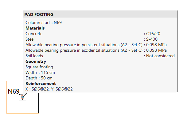 Permite consultar las tensiones en la base de la zapata. Para poder hacerlo, se debe calcular la obra.