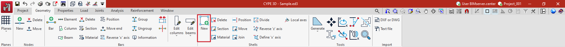 La introducción de láminas se realiza con la siguiente opción, disponible en el bloque "Láminas" de la barra de herramientas superior, dentro de la pestaña "Geometría" (en la solapa "Estructura").