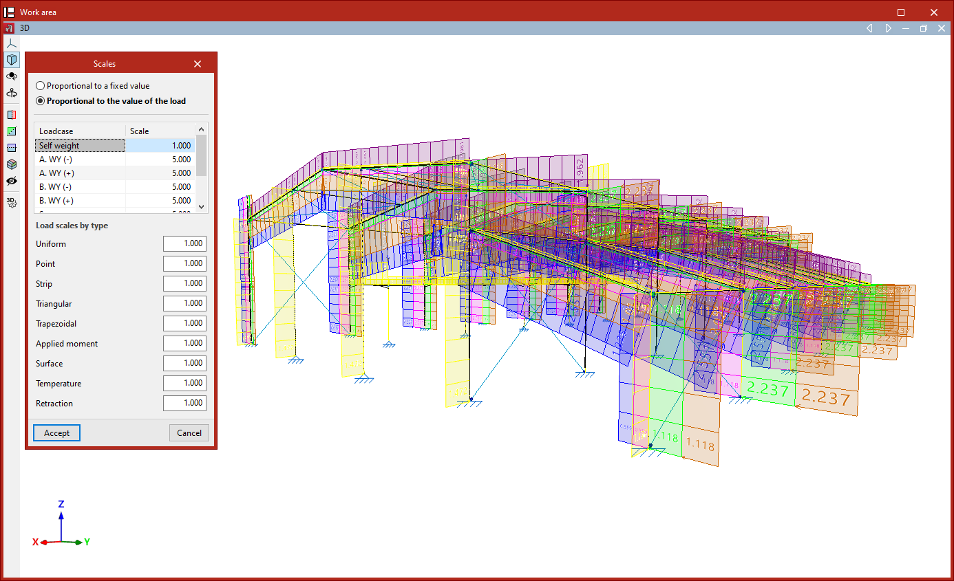 La opción "Escalas" permite ajustar la escala de dibujo para las cargas.